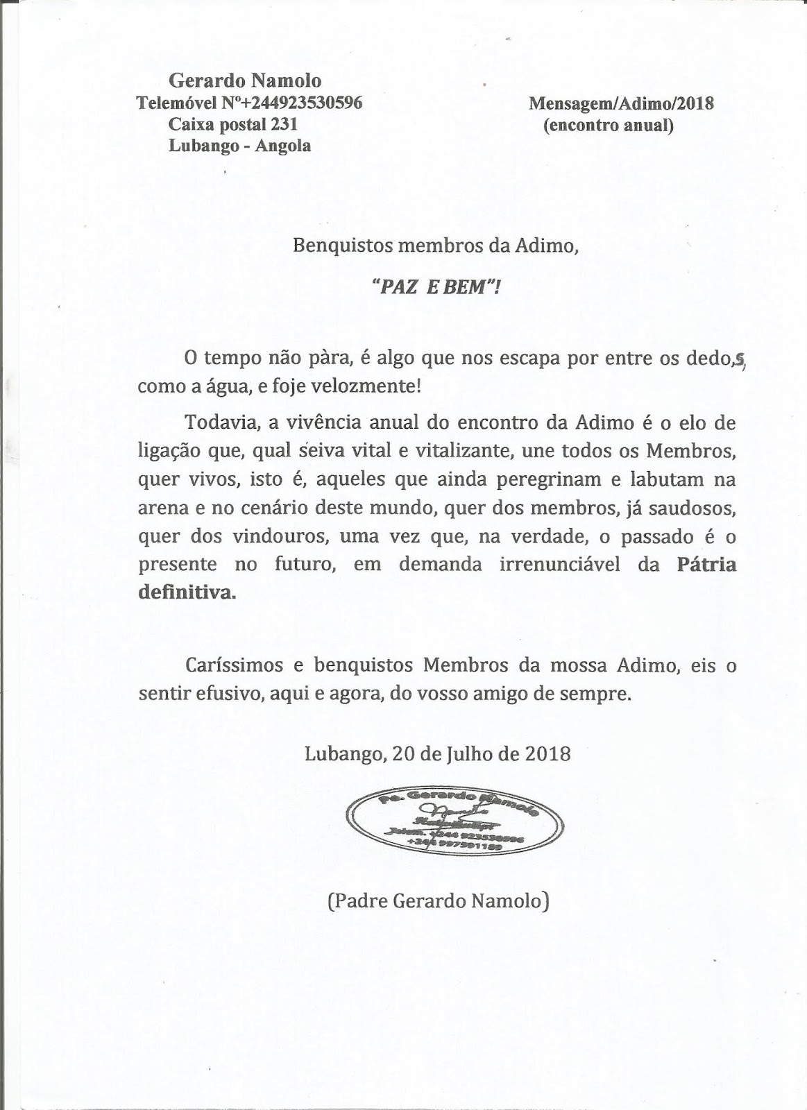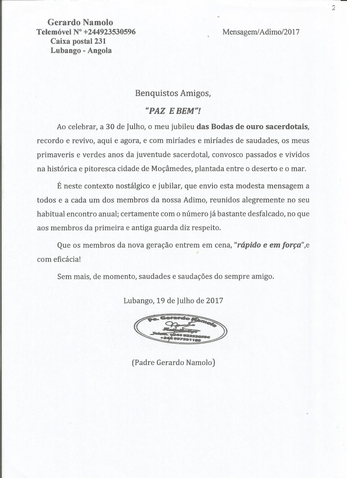 Mensagem do Padre Gerardo Namolo 2011
