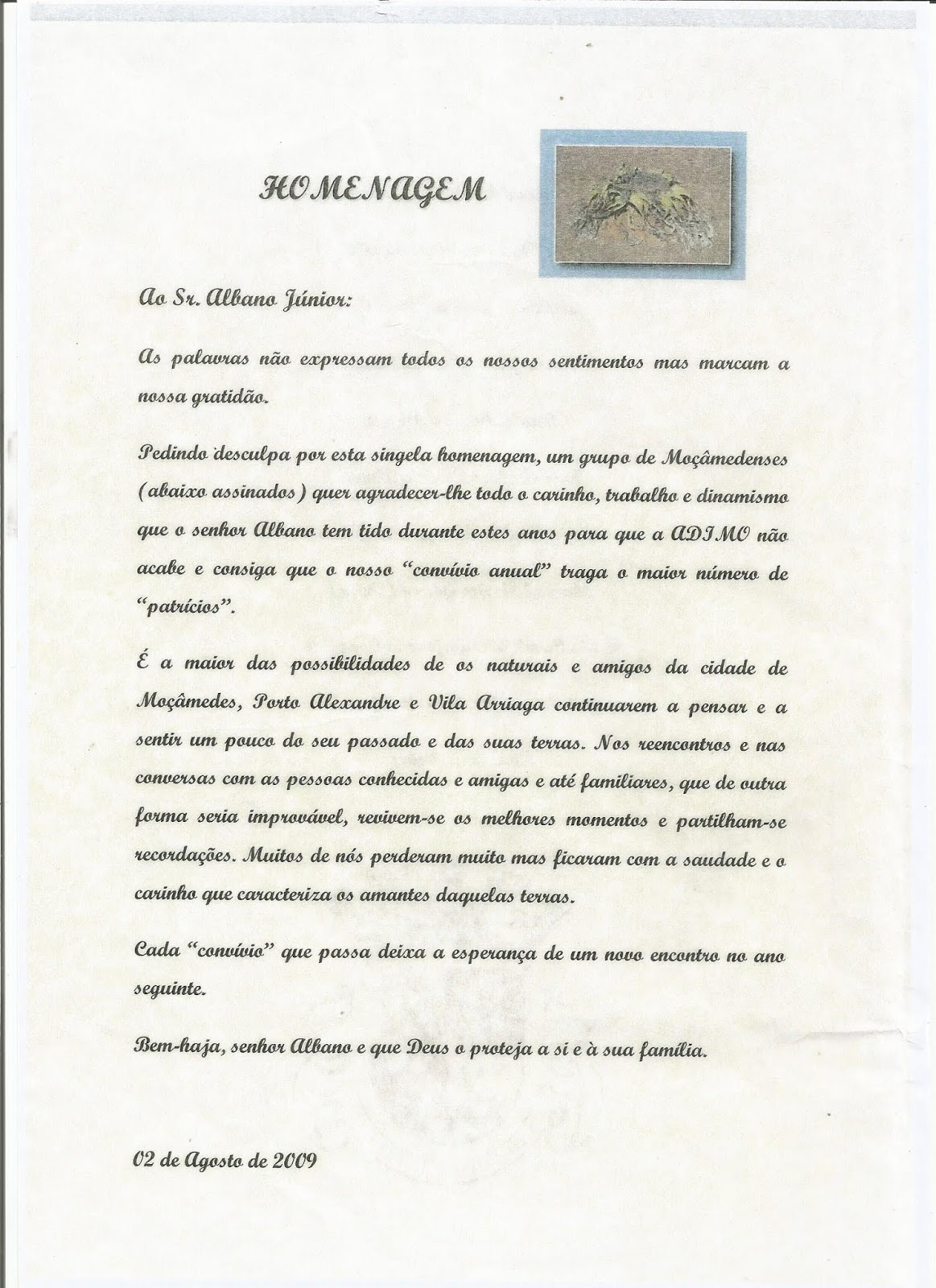 Documentos respeitantes a ADIMO - Amigos do Distrito de Moçamedes-Namibe